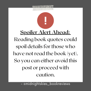 I would like to share some of my favorite quotes from Six of Crows. It doesn’t contain the humorous dialogue or exchanges between characters – which I think should be experienced by readers first hand. However, the quotes do have spoilers for the rest of the characters and their development in the book.