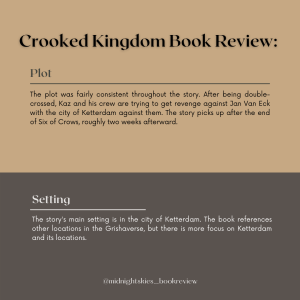 Before we get into the book review and overview, I want to give out a few trigger warnings within the book. Despite fiction books being a form of escapism from the realities of our world, sometimes those realities can be reflected in fiction.