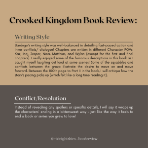 I will do my best to create spoiler-free book reviews for my reviews; I don’t want to spoil it for people who haven’t yet read the book or plan to read it in the future.