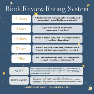 Thirdly, in each book review, I would do my best to add trigger warnings for readers if books have certain topics like violence or language. Additionally, I will share some interesting book/character tropes found in the book. I personally have a certain set of book/character tropes and I’m open to loving new ones – if done in a respectful or tasteful way.